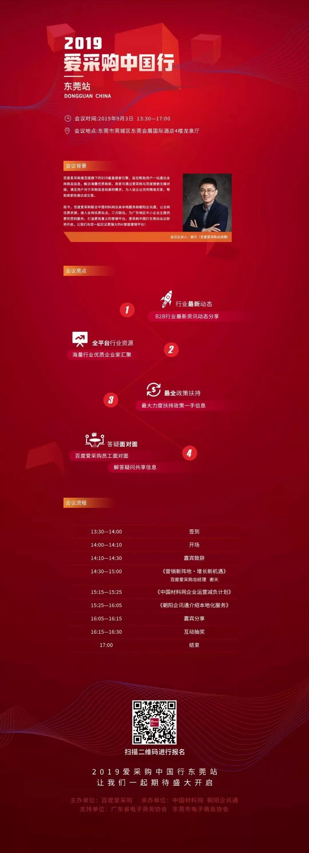 百度愛采購攜手朝陽企訊通共舉東莞盛會,手機端將成企業(yè)掌握關(guān)鍵2019年9月3日,百度愛采購將聯(lián)合朝陽企訊通、中國材料網(wǎng),在東莞會展國際酒店舉辦行業(yè)峰會,屆時將由百度愛采購總經(jīng)理謝天給大家分享新的機遇,還有幸邀請廣東商會和東莞商會、中國材料網(wǎng)和朝陽企訊通的主要負責(zé)人到場。9月3日,百度愛采購將聯(lián)合朝陽企訊通、中國材料網(wǎng),在東莞會展國際酒店舉辦行業(yè)峰會,屆時將由百度愛采購總經(jīng)理謝天給大家分享新的機遇,還有幸邀請廣東商會和東莞商會、中國材料網(wǎng)和朝陽企訊通的主要負責(zé)人到場。