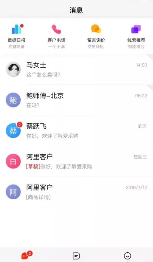 愛采購APP還能進行信息匯總,客戶就可以進行分類管理了,讓企業(yè)的客戶群體在不斷擴展的同時,能得到更好的沉淀,積累的企業(yè)數(shù)據(jù)庫就更加優(yōu)質(zhì),有利企業(yè)的良性發(fā)展。